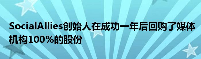 ###此后,该公司的营业额翻了一番,并将其客户组合扩大到40多家企业,包括MichaelPoole、WolvistonManagement、WiltonEngineering和BespokeFinancial。###在2020年取得成功之后,塔克女士现在买下了NorternStable在SocialAllies的股份,并再次拥有该公司100%的股份。###该业务最近搬迁到斯托克顿的普雷斯顿农场,现在希望明年的收入增长25%。###塔克女士说:“尽管过去一年面临挑战,SocialAllies仍然能够显着增长,现在我可以继续独立开展业务。我非常感谢NorthernStable的Dean、Mark、Rich和Tim给我这个机会,我喜欢一起工作来建立SocialAllies,现在我是100%的股东。###“我非常感谢这些当地企业主的支持,以及他们建立当地支持链心态的共同愿望。我也非常感谢我们的客户,他们认识到这是一个考验时期,但仍然致力于增长。###“我们的成功证明了与我们合作的具有前瞻性的企业认识到,在这个前所未有的时代,有效的社交媒体、品牌知名度和营销至关重要。”###NorthernStable成立于2019年1月,投资于新的科技初创企业,在其初始成长阶段为其提供融资。它还为公司提供办公空间、支持和财务管理建议。###【#SocialAllies创始人在成功一年后回购了媒体机构100%的股份#】到此分享完毕,希望对大家有所帮助。
